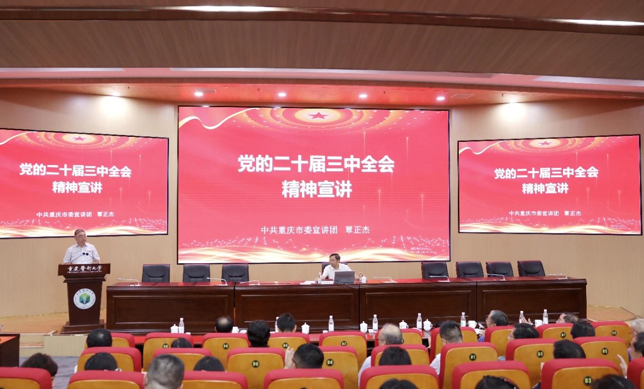 覃正杰从全会的基本情况和重要意义、深入学习领会习近平总书记在党的二十届三中全会上的重要讲话精神、全面准确理解全会《决定》提出的进一步全面深化改革重大举措、贯通学习习近平总书记对重庆改革工作的系列重要指示要求,加快打造全面深化改革先行区、深化教育综合改革,推动万搏线上平台事业高质量发展、全力以赴抓好全会精神贯彻落实等六个方面对党的二十届三中全会精神进行了宣讲。