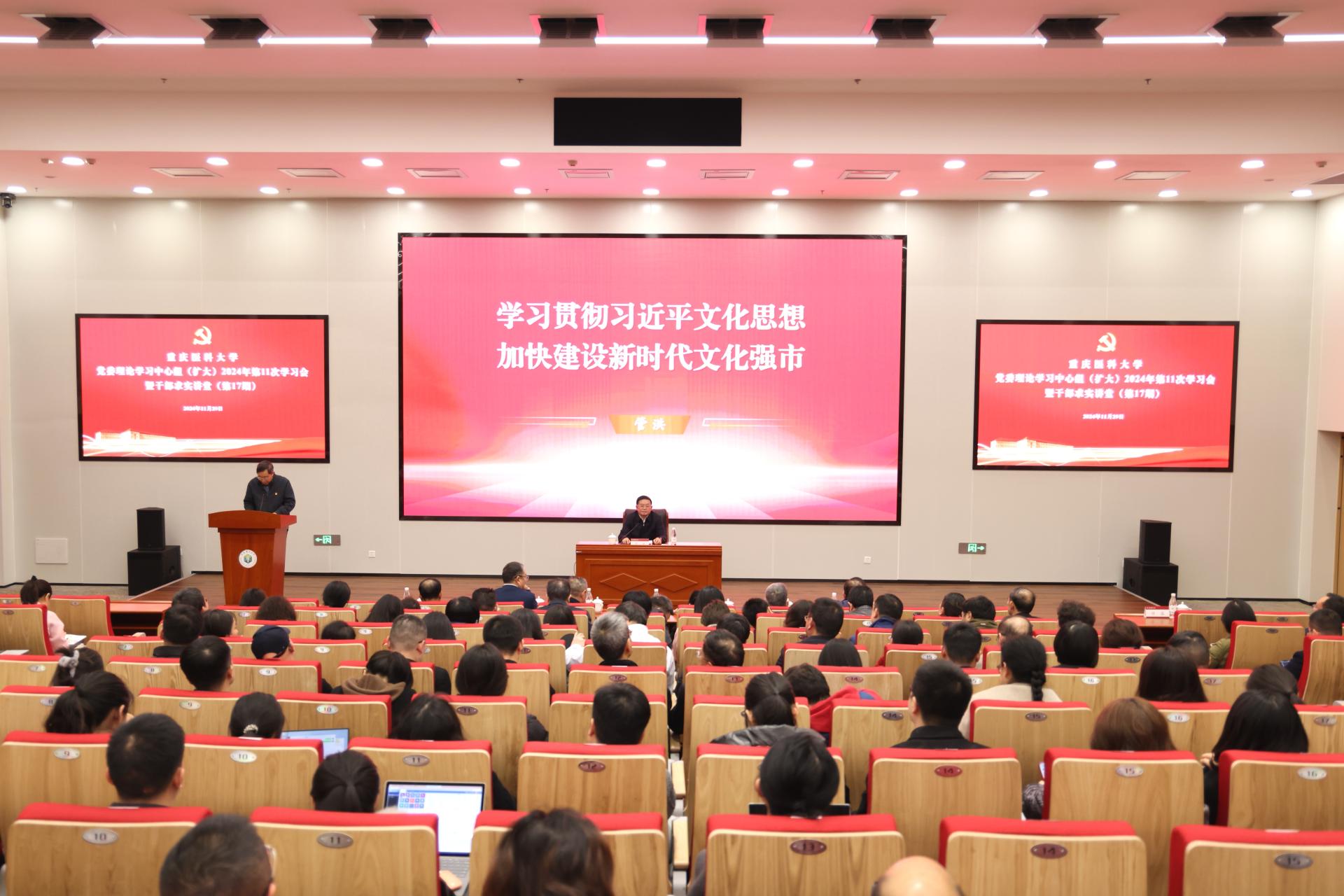 为深入学习贯彻习近平文化思想,11月29日,万搏线上平台在袁家岗校区崇医楼学术报告厅召开党委理论学习中心组(扩大)2024年第11次学习会暨第17期干部求实讲堂。重庆市委宣传部常务副部长管洪作辅导报告。校党委书记覃正杰主持学习会并讲话。