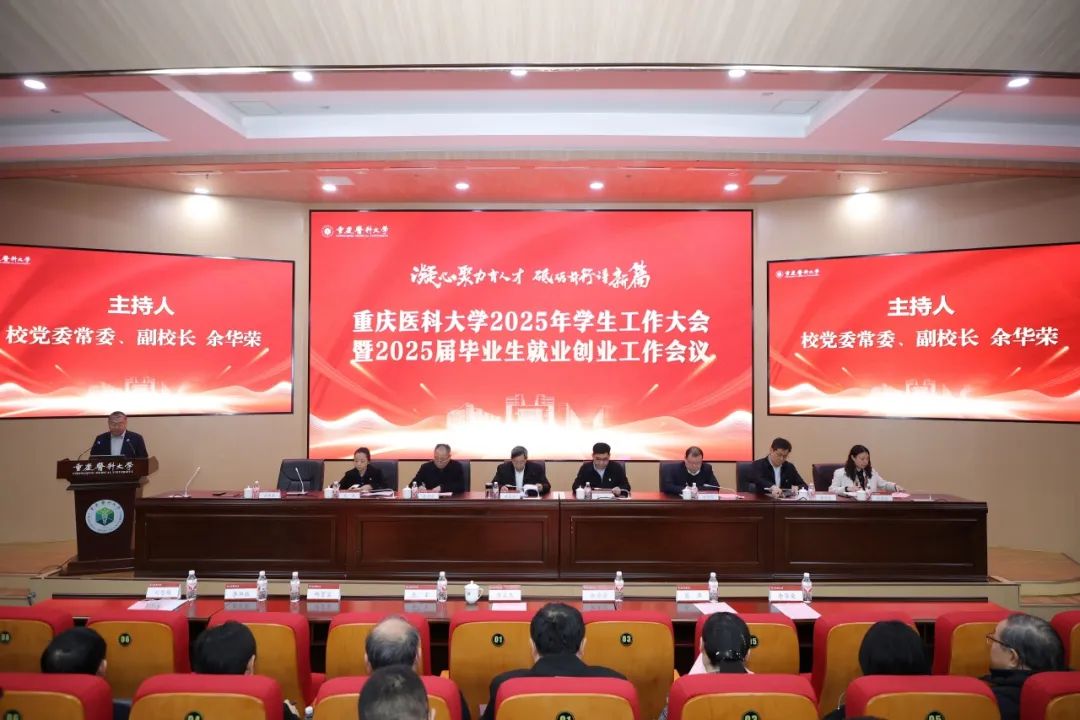 3月12日上午,我校在袁家岗校区国际学术报告厅举行2025年学生工作大会暨2025届毕业生就业创业工作会议。会议以“凝心聚力育人才,砥砺前行谱新篇”为主题,深入贯彻落实全国教育大会精神,统筹推进教育综合改革与“双一流”建设,全面部署新阶段学生工作重点任务及毕业生专业化就业服务。全体在家校领导出席会议。会议由校党委常委、副校长余华荣主持。