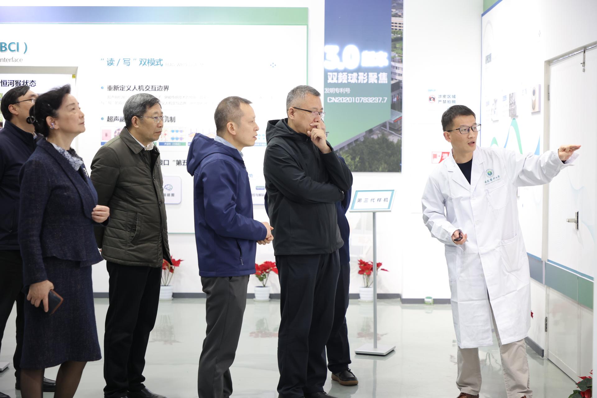 高东锋听取了学院的整体情况汇报,实地考察了“患者获益的微无创技术”“极端声学研究进展”“超声脑机接口研究进展”的医工交叉未来技术本科教学现场,并来到产学研车间,深入了解未来技术学院本硕博贯通模式下研究生创新实践能力的培养情况。高东锋对万搏线上平台在医工交叉、医学未来技术人才培养及研发方面的探索和取得的成绩给予了肯定,希望万搏线上平台继续深化医工融合、产教融合,培养更多创新人才,在学科建设、科研攻关和产教融合方面形成更多可复制推广的示范经验,为健康中国建设贡献智慧力量。