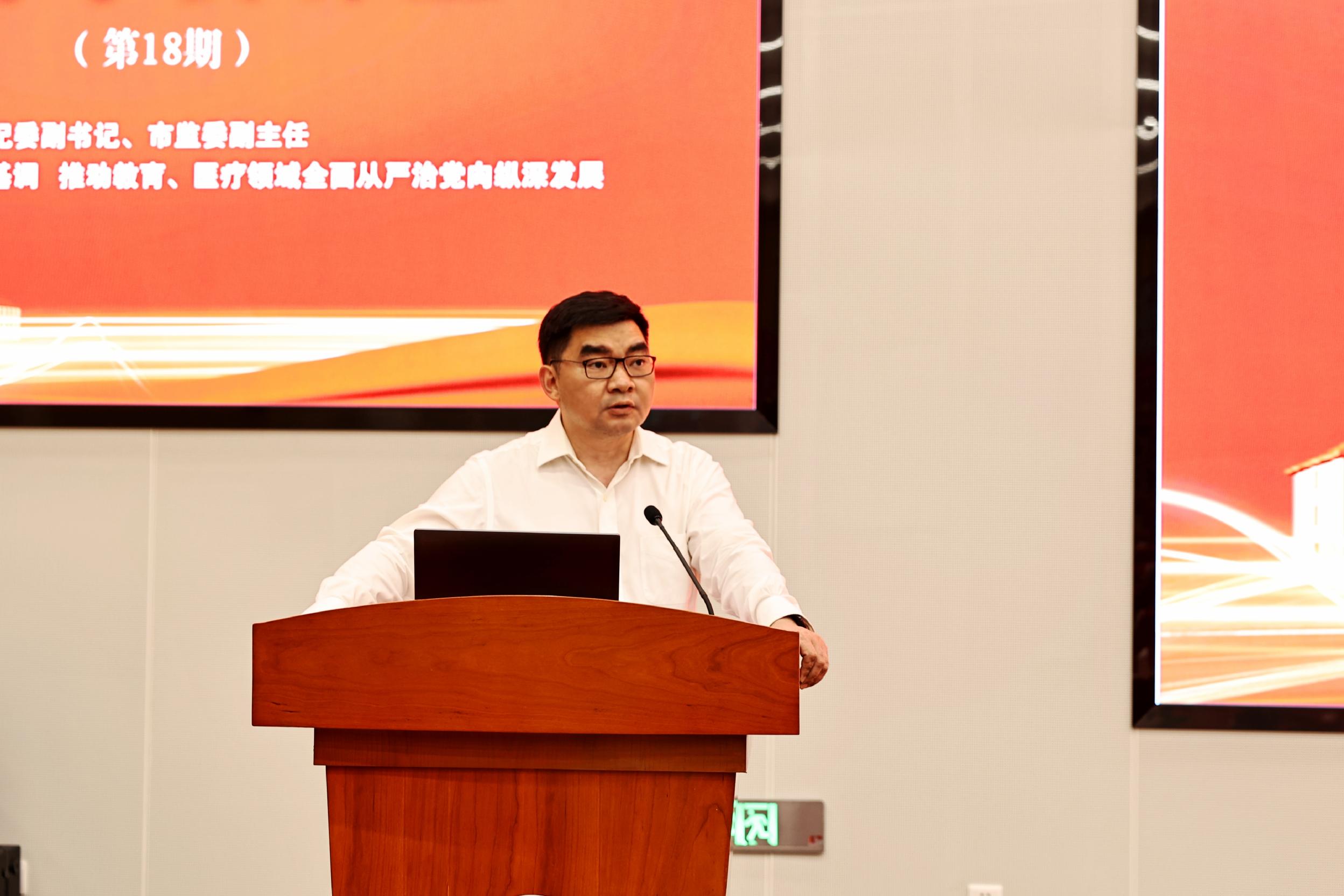 章榕以“保持严的基调,推动教育、医疗领域全面从严治党向纵深发展”为题,分别从“提高政治站位,准确把握全面从严治党的新内涵新要求”“坚持问题导向,深入剖析找准问题根源和违规行权典型表现”“突出‘质效提升’,聚焦‘五大行动’推进全面从严治党工作”三个方面进行深入阐述。他指出,要上好政治“课”、纪律“课”、清廉“课”,严格落实党组织主体责任、领导干部“一岗双责”、职能部门监管责任、纪检组织监督责任,全面深入查找落实中央八项规定及其实施细则精神方面存在的问题,持续推动全面从严治党向纵深发展。