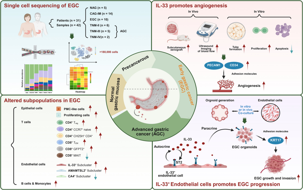 研究揭示IL-33+内皮细胞亚群在胃早癌中的关键作用
