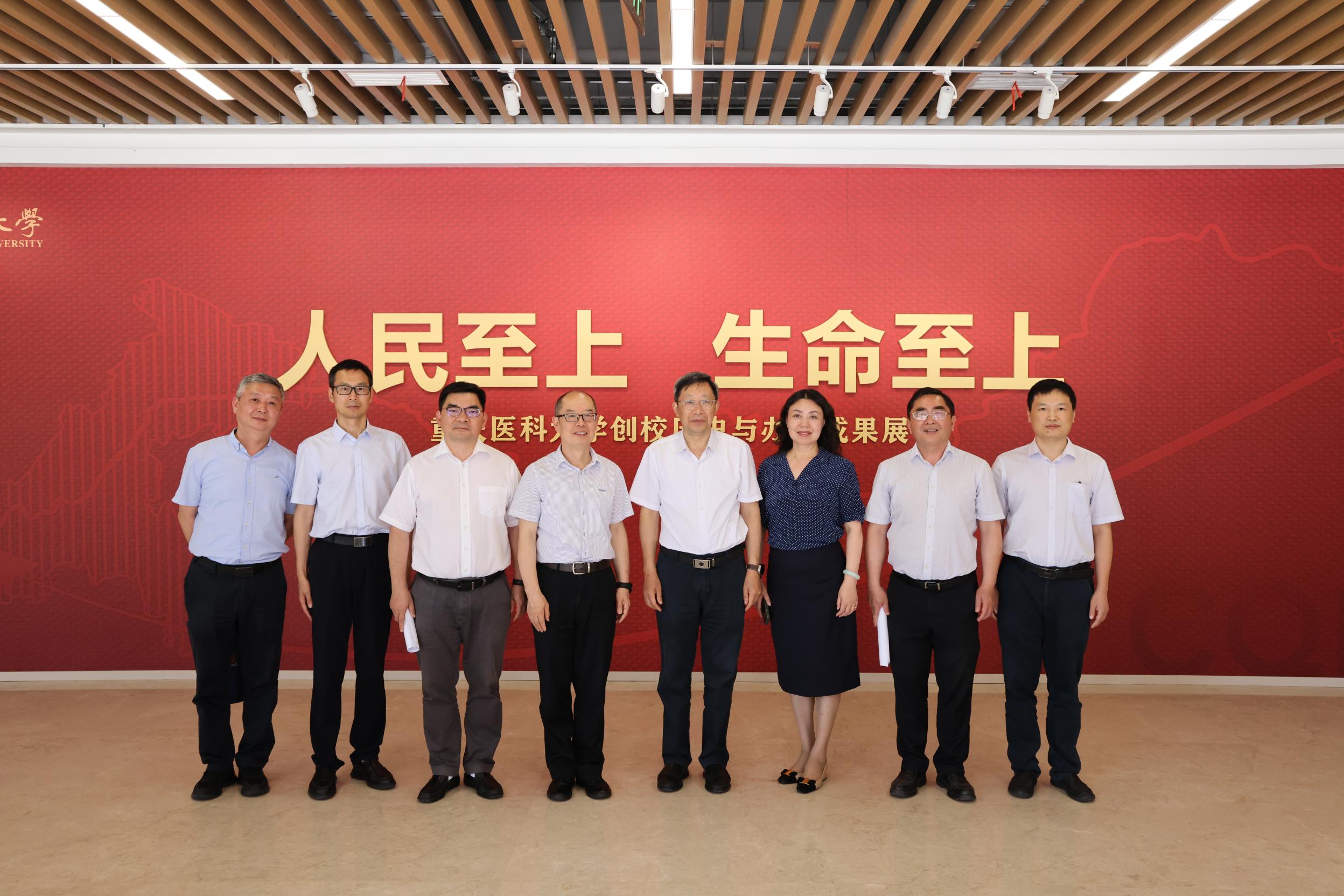 尚医楼内,覃正杰陪同调研组参观创校历史与办学成果展,系统阐述建校以来在人才培养、科研创新、社会服务等领域取得的突出成就,生动展现了一代代师生在西迁精神引领下接续奋斗、推动万搏线上平台高质量发展的奋进历程,获调研组一行高度赞誉。