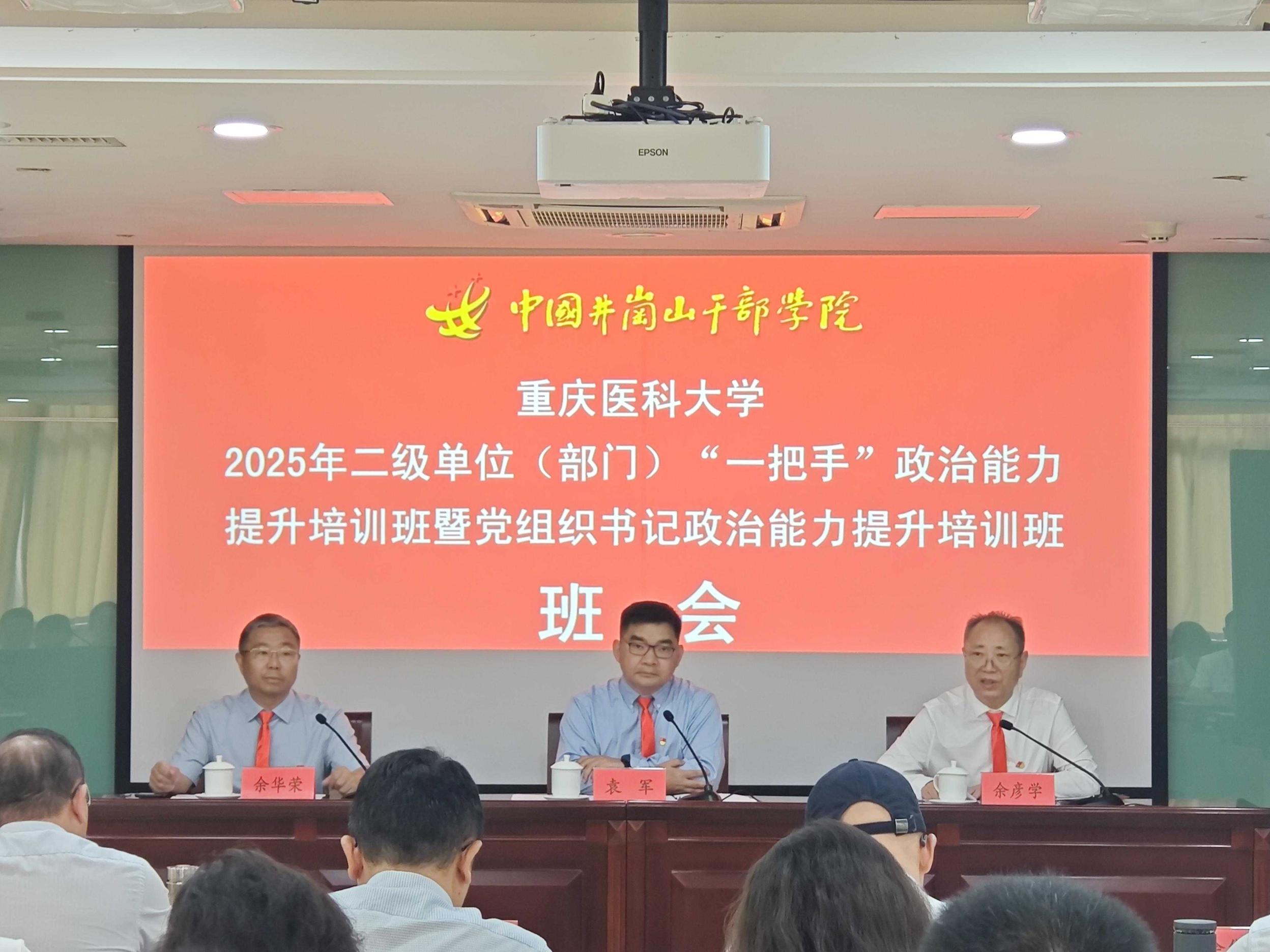 校党委副书记、副校长袁军,校党委常委、纪委书记、市监委驻万搏线上平台监察专员余彦学,校党委常委、副校长余华荣出席开班式和班会。袁军作训前动员讲话,余彦学强调培训纪律,余华荣宣读班支委名单。中国井冈山干部学院副院长肖华孝在开班式致辞,培训部主任李志强作入学教育。培训班班长朱丹接班旗,学员代表贾微作表态发言。
