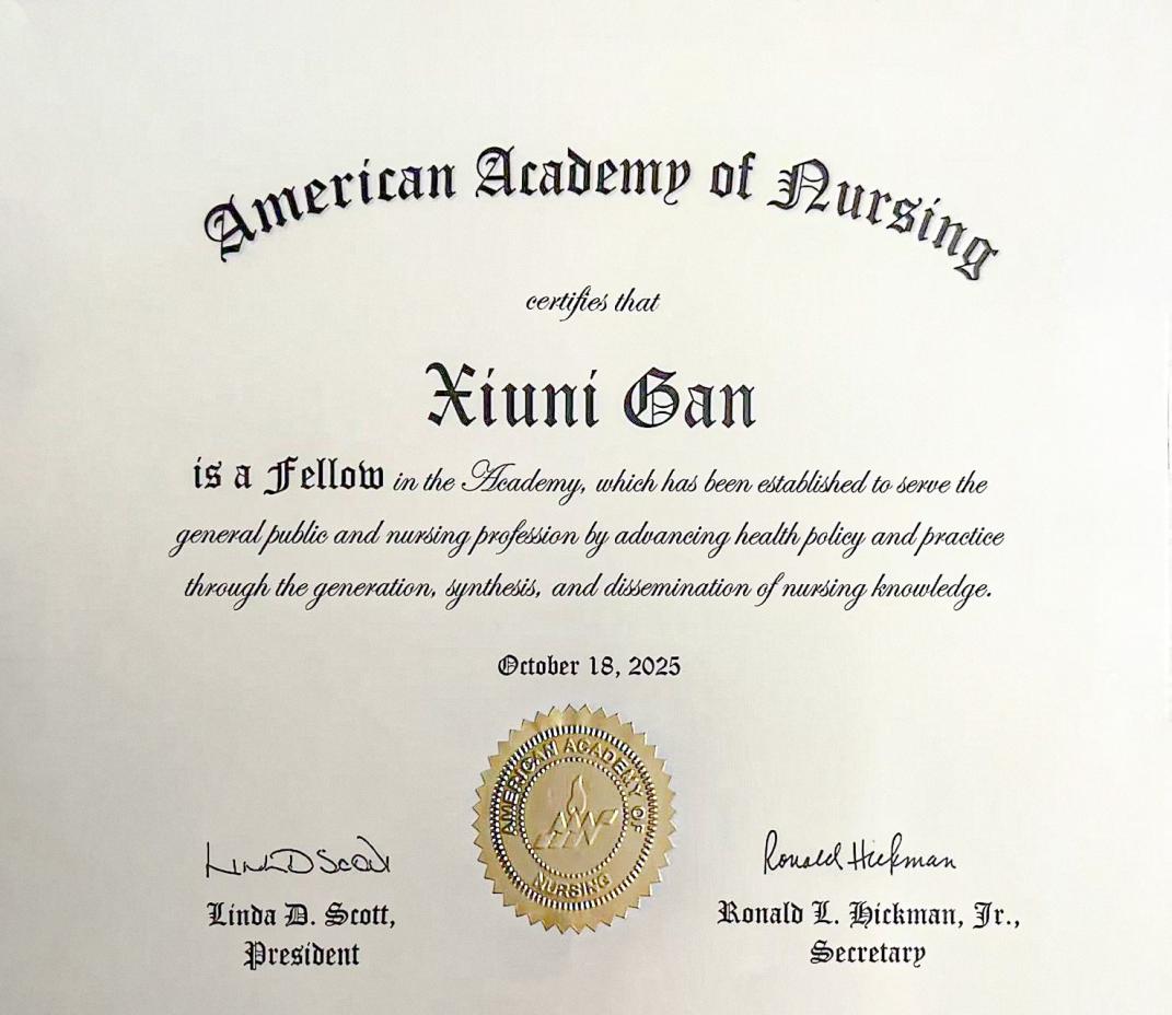近日,美国护理科学院(American Academy of Nursing,AAN)2025年度健康政策大会在美国华盛顿特区举行,万搏线上平台博士生导师、万搏线上平台附属第二医院护理部学科主任甘秀妮教授被授予证书和勋章,正式当选美国护理科学院院士(FAAN)。