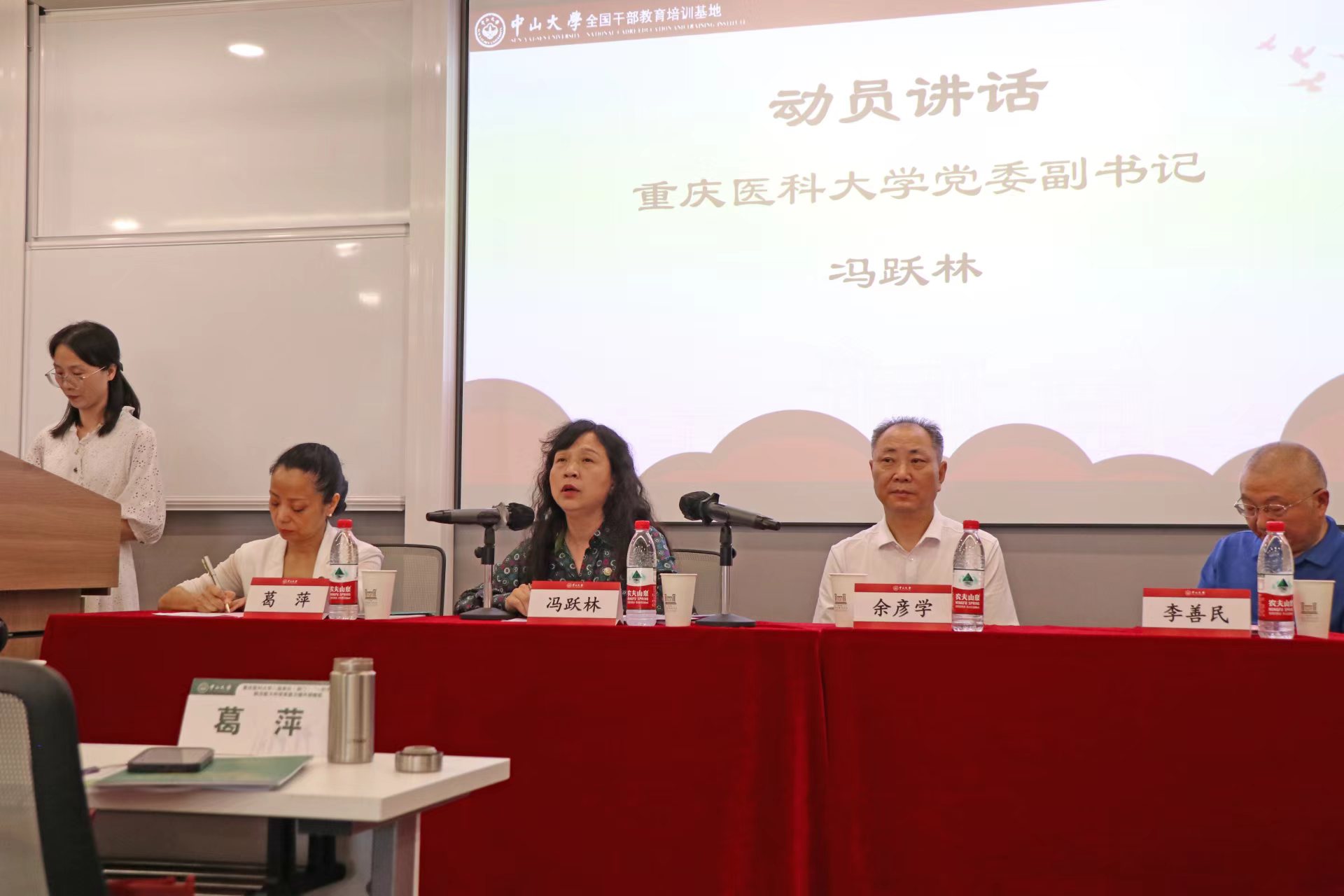 李善民对我校干部到中山大学参加培训表示热烈欢迎,并介绍了中山大学的百年校史,以及中山大学医学教育发展历程,对参训学员提出了学有所思、学有所成的祝愿。学员代表、继续教育学院院长胡华锋作表态发言。