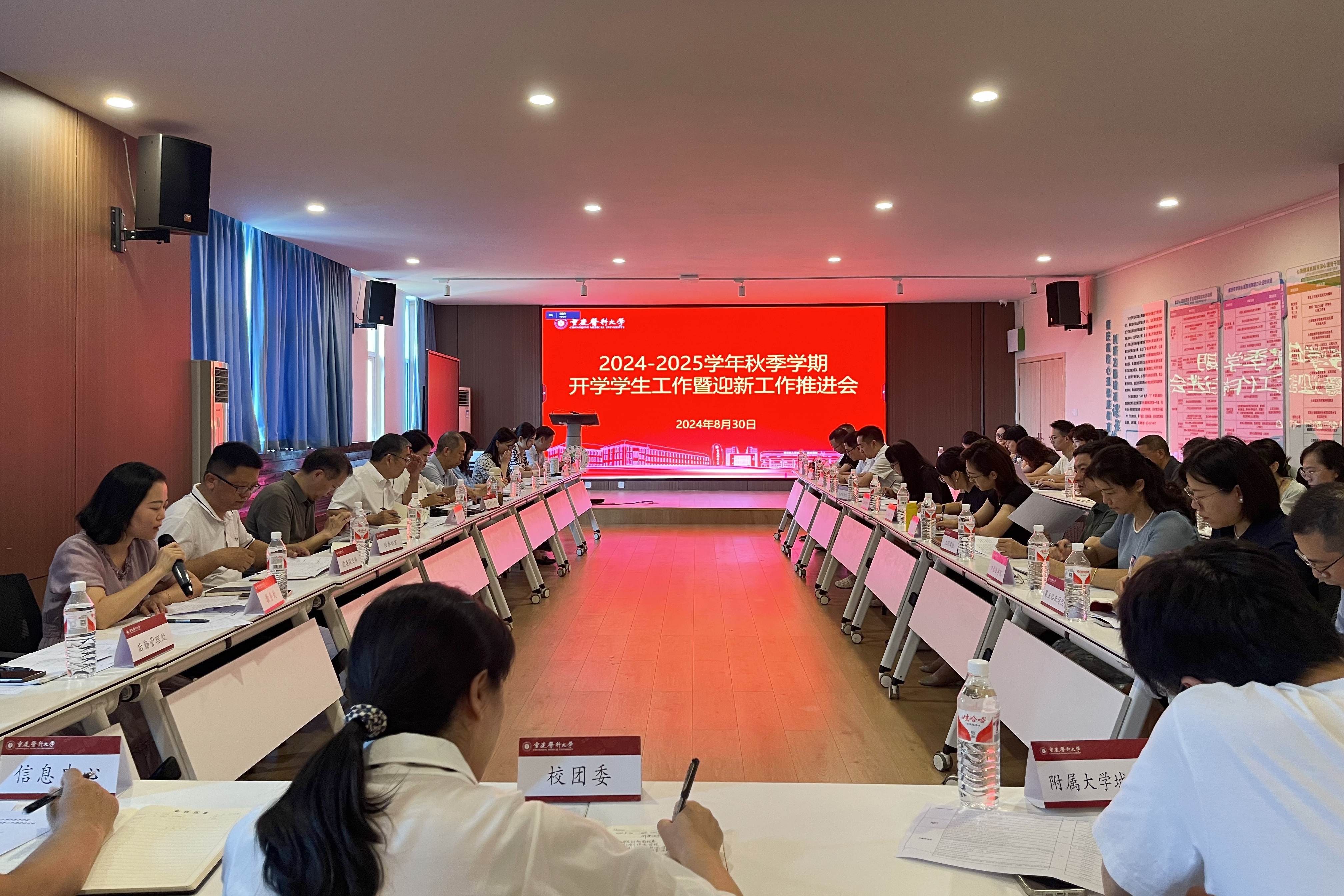 会议分两个阶段进行。会议第一阶段为秋季学期开学工作会议,校办公室、党委宣传部、党委保卫部、机关党委、教务处、财务处、后勤管理处、信息中心、校团委、附属大学城医院等职能部门负责人分别就学生返校、安全稳定、消防安全、学生档案、学生选课、学费收缴、研究生支教团招募、学生组织换届选拔、后勤保障服务、校园网改造等工作进行了通报和安排。党委学生工作部副部长杨祖义对2024届毕业生就业追踪、2025届毕业生就业工作启动、“互联网+”创新创业大赛国赛准备等工作情况进行了通报和布置。党委学生工作部副部长周恒就秋季学期综合素质测评认定工作、奖助工作、心理健康教育咨询、危机干预等工作进行了布置和提醒。党委学生工作部副部长滕永直对本科学生思想政治教育、思想动态调研、辅导员队伍建设、学生开学返校、日常教育管理、安全稳定、一站式学生社区建设等近期相关学生工作进行了重点强调和布置。