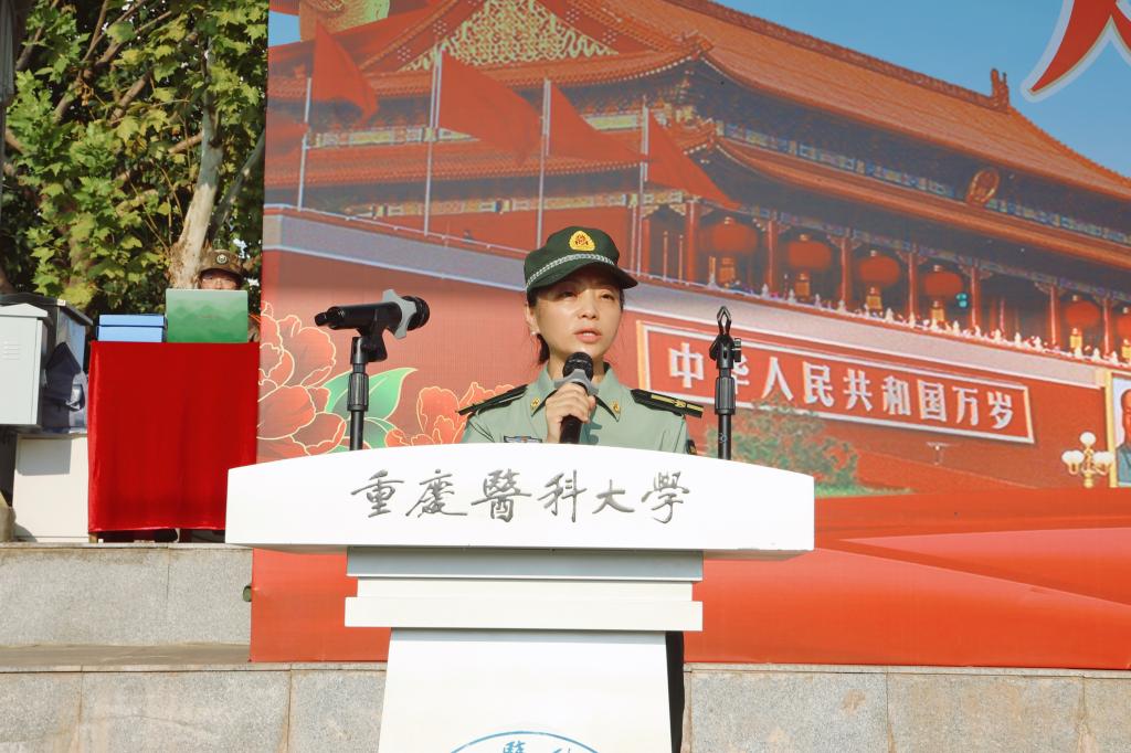 学生代表蔡文天代表2024级参训学生庄严承诺,将在本次军训中服从命令,听从指挥,严守纪律,刻苦训练,团结互助,不断发挥“严谨、求实、勤奋、进取”的校训,努力成长为“德智体美劳”全面发展的“五术”医学人才和社会主义接班人。