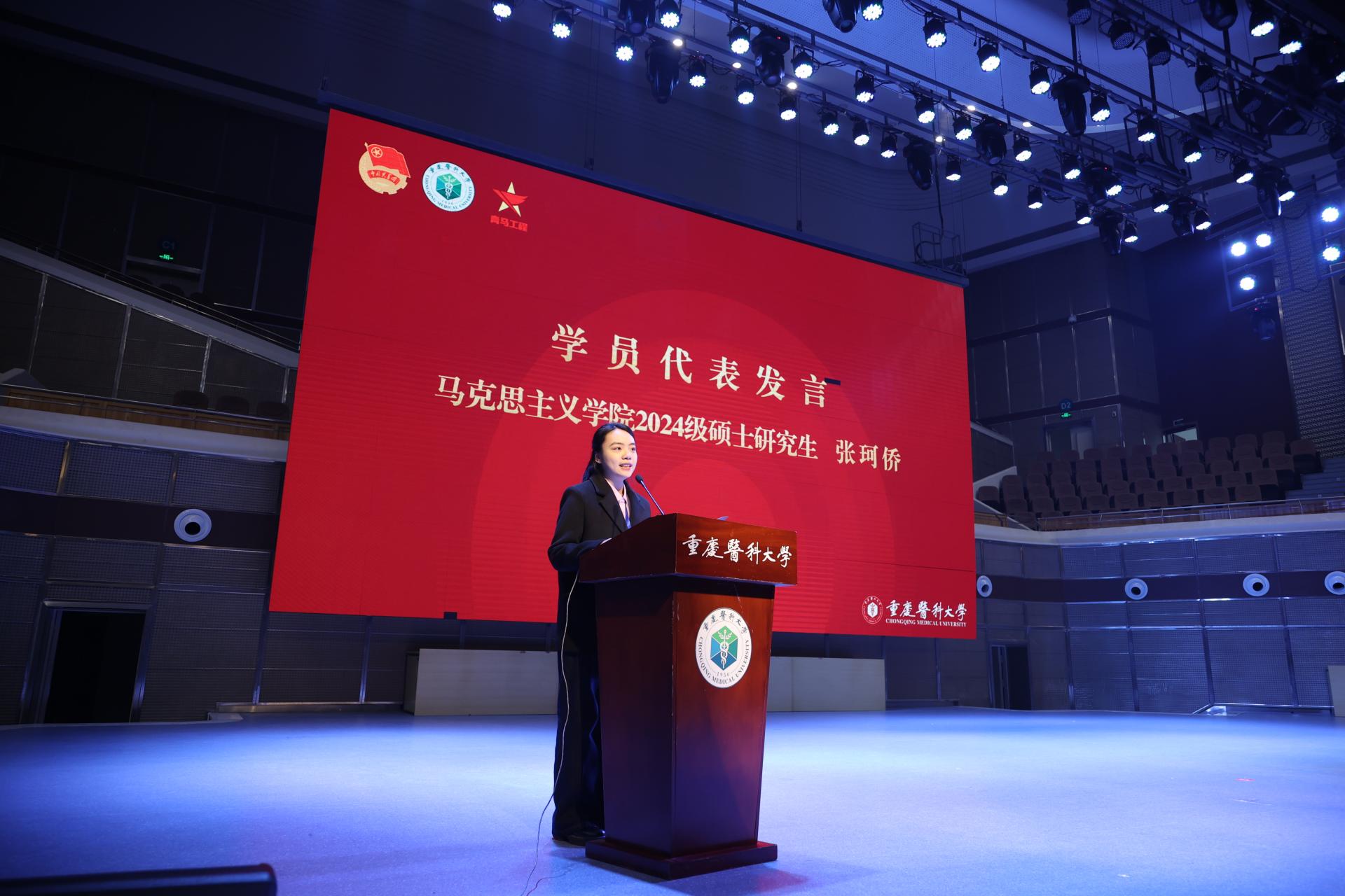 “青马工程”培训班班主任、马克思主义学院副院长郭笑雨在开班仪式上发言。他表示,培训班的学员们作为青年马克思主义者,应该以一往无前的奋斗姿态和永不懈怠的精神状态,勇挑重担、苦干实干,在新时代新征程中留下许党报国的奋斗足迹。马克思主义学院2024级硕士研究生张珂侨同学作为学员代表发言。她叙说了自己在成长中向马克思主义靠拢的心路历程,号召同学们以矢志不渝的追求和责任担当,坚持在学中干、在干中学,让思想转化为身上的能力、脚下的动力。
