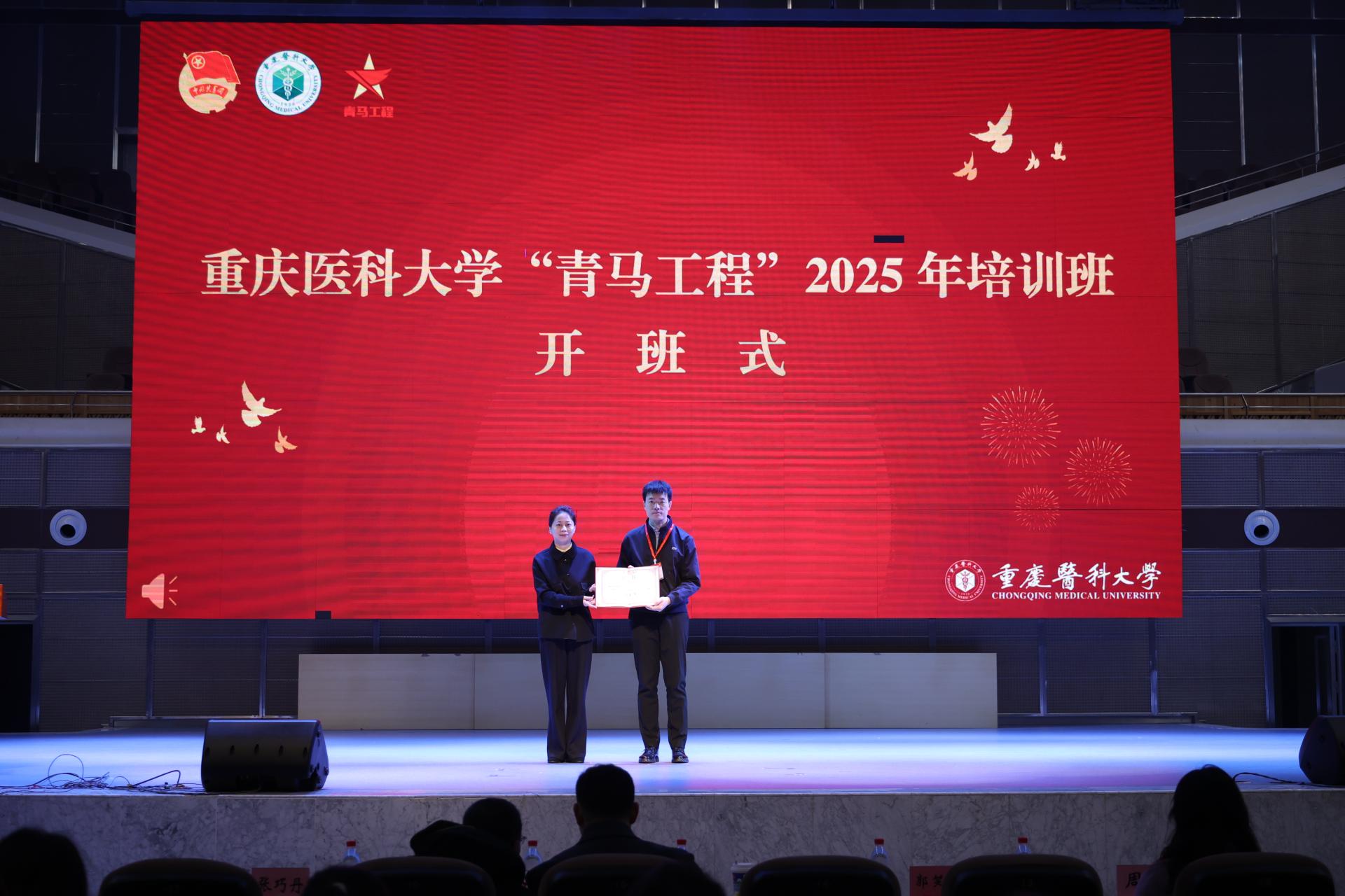 为全面贯彻习近平新时代中国特色社会主义思想,学习宣传贯彻党的二十大和二十届二中、三中全会精神,着力培养理想信念坚定、综合素质能力突出,可堪大任的新时代重医青年骨干,3月22日,万搏线上平台在缙云校区同生礼堂举行2025年“青马工程”培训班开班仪式暨第一次培训。万搏线上平台党委副书记、副校长袁军,团市委组织部部长程希,党委宣传部、党委学生工作部、校团委、马克思主义学院负责人,各学院师生代表、教师团干部、“青马工程”培训班带组老师和学员等700余人参加本次活动。活动由校团委书记张巧丹主持。