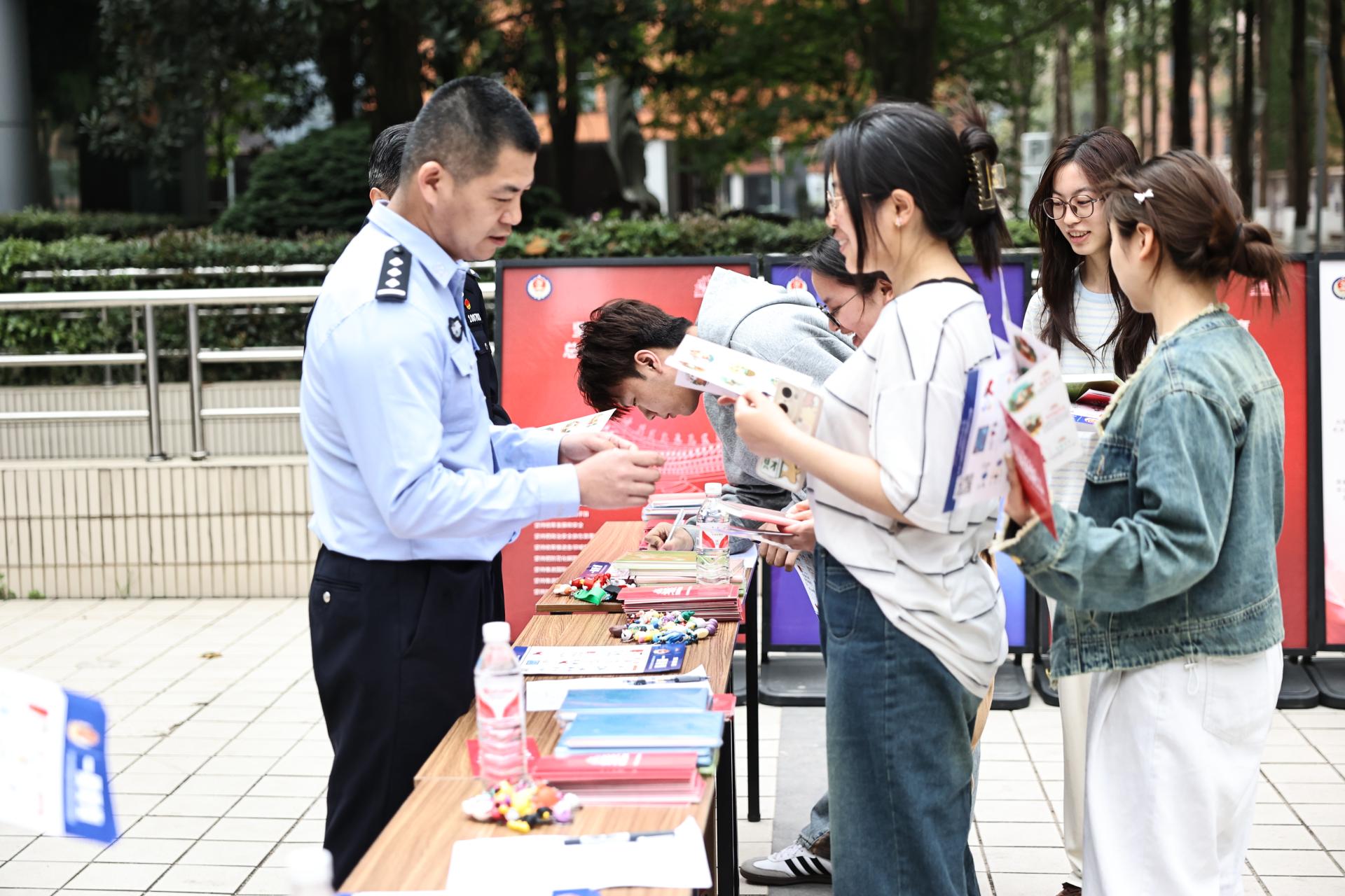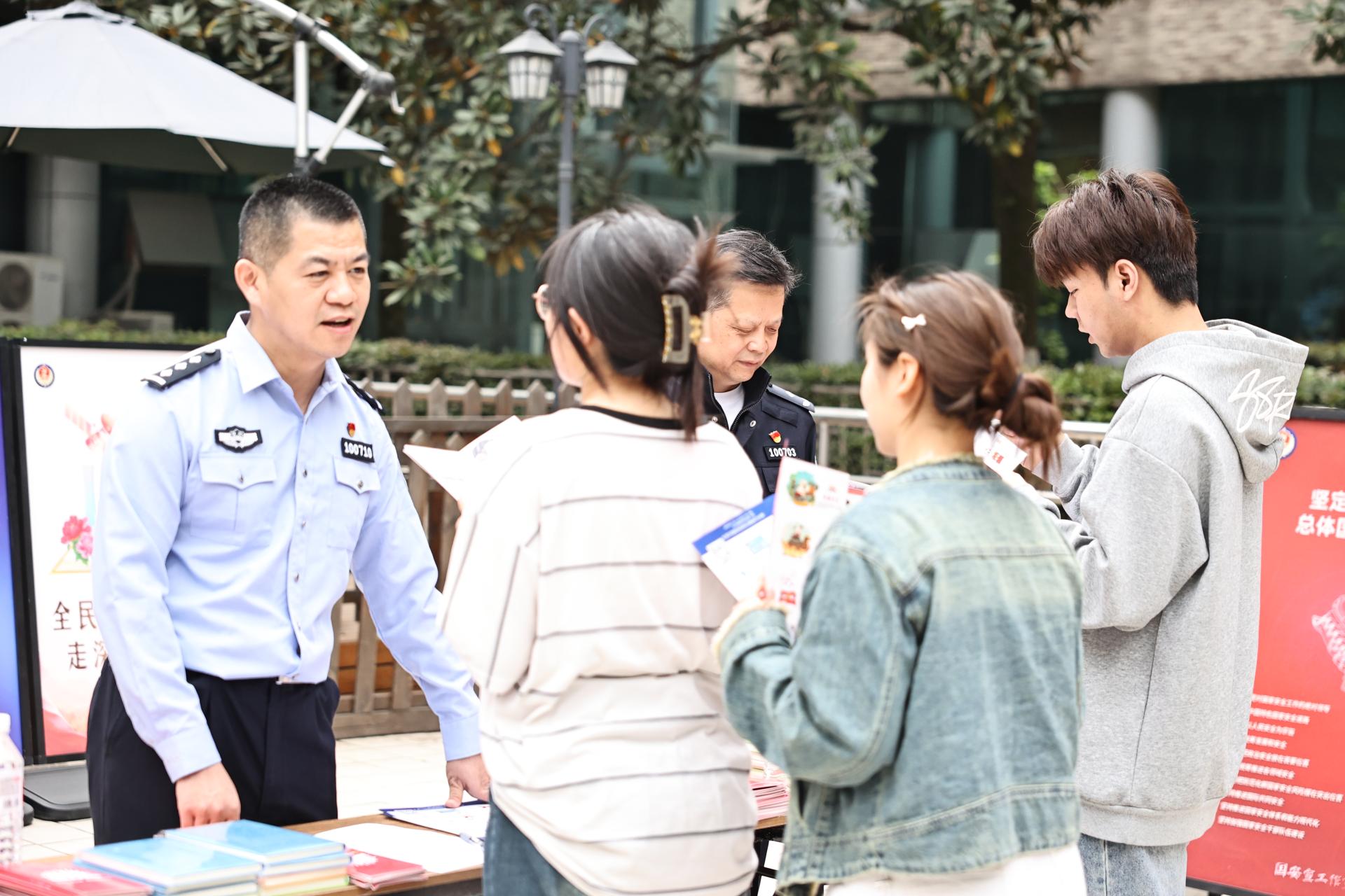 万搏线上平台携手渝中区国安办、渝中区公安分局、医学院路派出所围绕“全面国家安全教育,走深走实十周年”主题,在袁家岗校区开展全民国家安全教育日主题活动。在活动现场警官们通过展示宣传海报,分发宣传画册,讲故事、举事例等多种宣传方式,以“全面国家安全教育,走深走实十周年”为主题,将国家安全知识的基本内容进行了深入细致的现场讲解。同学们认真听、仔细记,主动参与互动交流,进一步了解了国家安全的定义与内涵,引导师生领会总体国家安全观的内涵和精神实质。