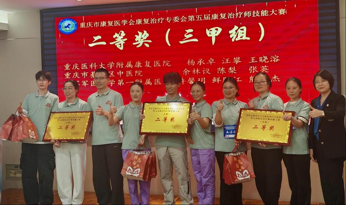 近日,由重庆市康复医学会、重庆市康复医学会康复治疗专业委员会联合主办的重庆市第五届康复治疗师技能大赛圆满落幕。附属康复医院康复治疗师杨承卓、汪攀、王晓溶凭借扎实的专业基础、娴熟的操作技能与出色的应变能力,在比赛中表现突出,获大赛二等奖,其中王晓溶获“最佳操作选手”称号。