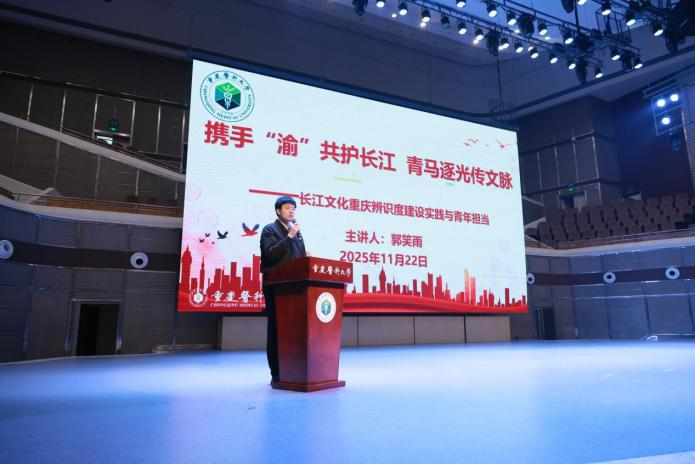 马克思主义学院副院长、班主任郭笑雨以《携手“渝”共护长江 青马逐光传文脉》为题授课。讲座分析了“十四五”时期重庆通过布局沿江产业、明晰比较优势、演绎岸线特色、突出惠民利民、注重差异发展等有力举措持续推动长江文化“重庆辨识度”跃升,介绍了“十五五”时期长江经济带沿线11省市将带头开放、带动开放,建立同国际通行规则衔接的合规机制,坚持“引进来”和“走出去”并重,引领带动我国高水平对外开放新格局,号召青马学子努力做“长江文化的学习者”“长江文脉的践行者”“长江精神的传播者”。