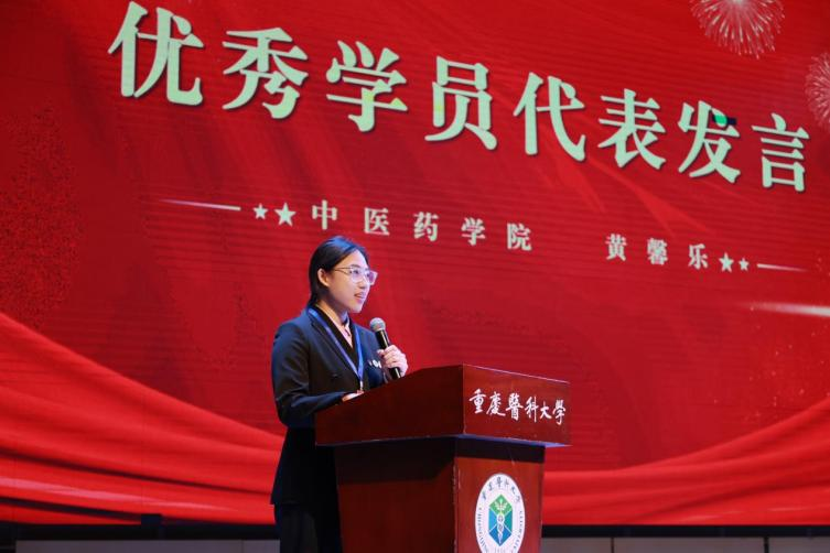 中医药学院黄馨乐同学作为优秀学员代表发言,她分享了通过系列理论课程筑牢信仰之基、通过基层实践锤炼为民本领的深刻体会,讲述了她从政治理论研学到田间地头实践的成长蜕变,号召全体学员在脚踏实地地锤炼与奉献里,永葆热忱、笃行不怠。